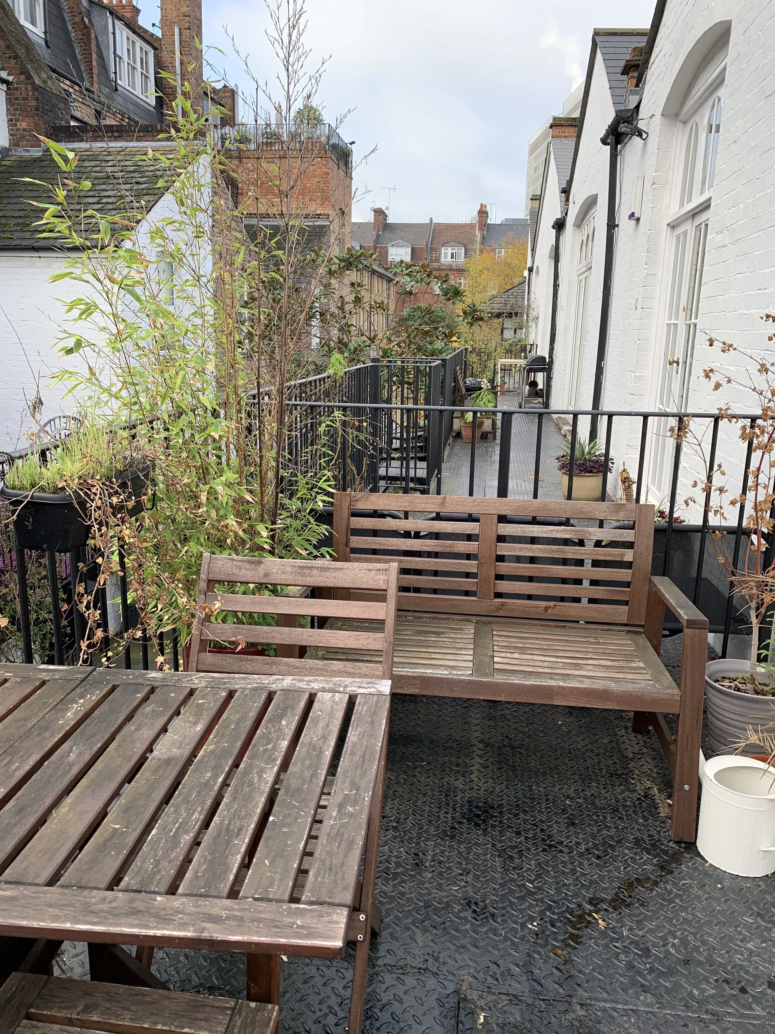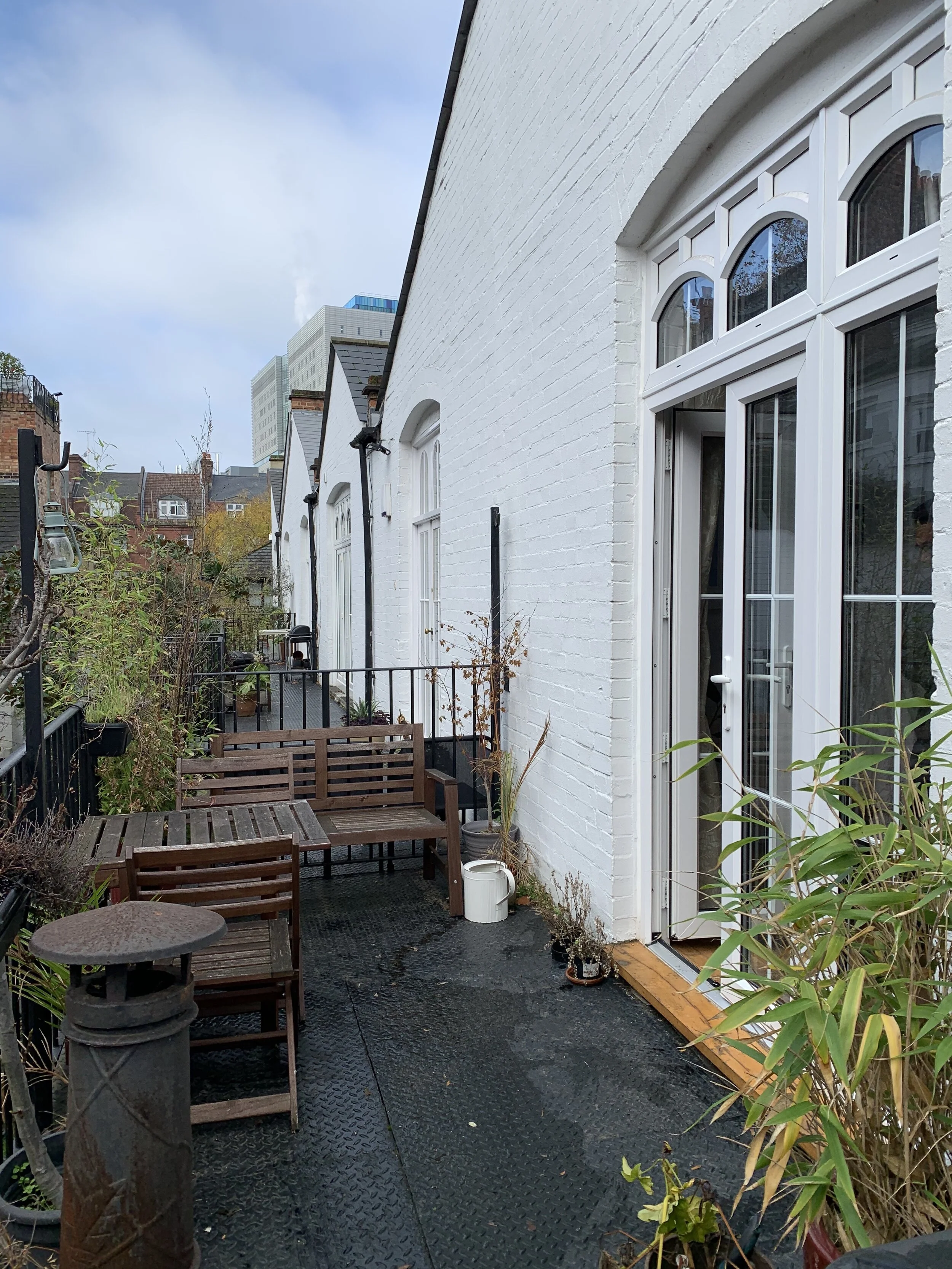 The seven stables share a yard, which is well tended and very green in the summer. The access to the yard is discreetly tucked between two houses on Ashfield Street, and is very secure. Visitors can be buzzed in using a buzzer in the dining room..